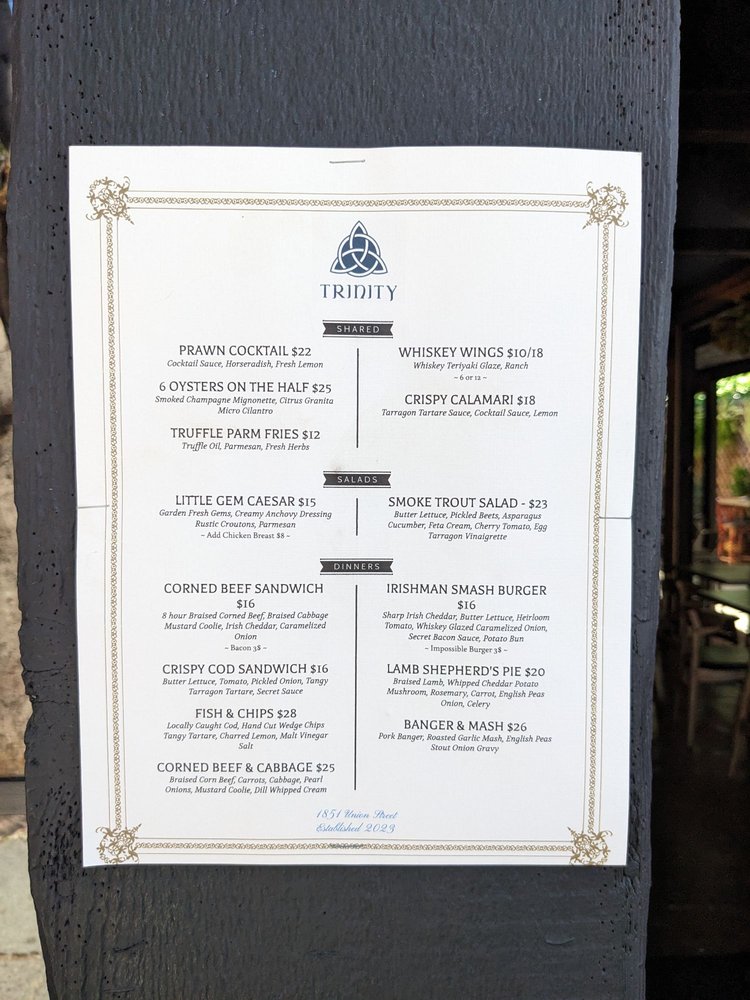 Introducing Trinity Bar & Restaurant, a vibrant fusion of Irish charm and contemporary dining nestled at 1851 Union St, San Francisco, CA. This dynamic venue stands out as a premier spot for sports lovers and cocktail connoisseurs alike. From delectable starters like the Garlic Parmesan Truffle Fries to refreshing mains such as the Trinity Burger, every bite is crafted to perfection. Their diverse menu also features enticing options like Oysters and Fish Tacos.